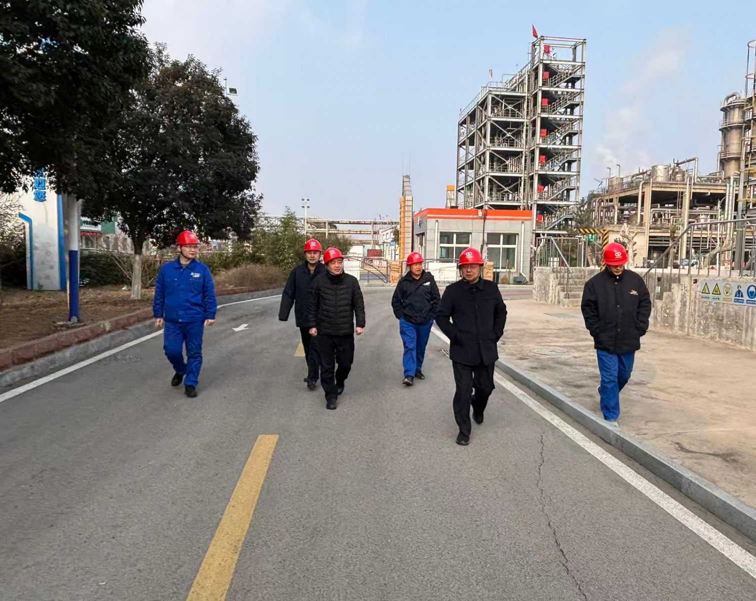 2026年1月31日,江苏森萱医药股份有限公司董事长吴玉祥到鲁化森萱公司现场办公,鲁化森萱董事长童贞明陪同。吴董事长一行深入二氧戊环、三聚甲醛切片装置现场,对安全、环保、生产运行管理等工作进行了督导检查,对年产8000吨二氧戊环节能减排改造项目的建设准备情况进行了推进。